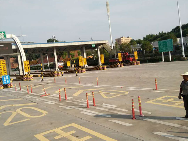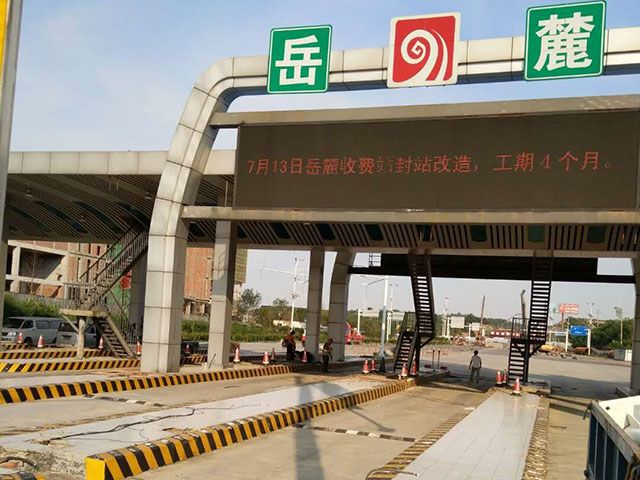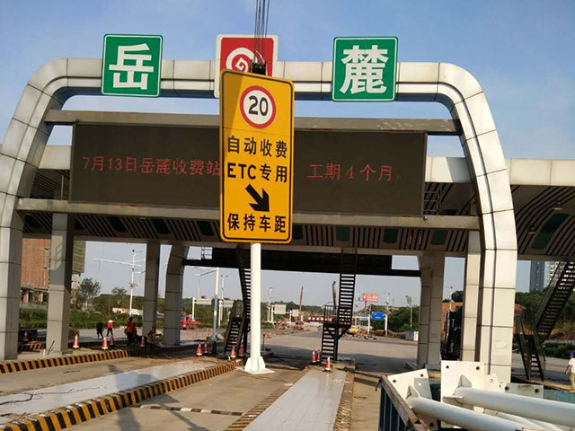 長(zhǎng)韶婁岳麓收費(fèi)站隨車吊做最后信號(hào)燈安裝